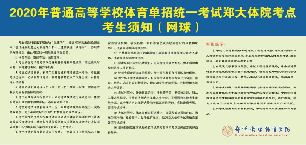 2020年全国体育单招郑大体院考点网球项目考生须知