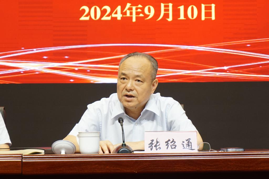 校领导张绍通讲话。他首先代表学校党委向全校教职员工、离退休老同志以及奋斗在教育战线的体院校友致以节日问候和美好祝愿。他指出,面对当前社会经济态势和学院发展现状,全体教职工要居安思危,提高自身素养,树立创新意识,转变发展思路,保持“赶考”的清醒和奋进的姿态,学校要以改革发展为动力,持续完善治理体系,提升管理能力,努力在校园基础设施建设、人才评价机制、薪酬体系、学科及课程建设等方面,为广大教师提供一流的服务保障,不断实现河南体育学院事业高质量跨越式发展。他强调,全校教师要按照习近平总书记提出的“四有”教师标准,以人民教育家为榜样,大力弘扬教育家精神,努力成为教书育人的大先生,为学生点亮理想的灯、照亮前行的路,为体育河南建设、体育强国、教育强国建设贡献智慧和力量。
