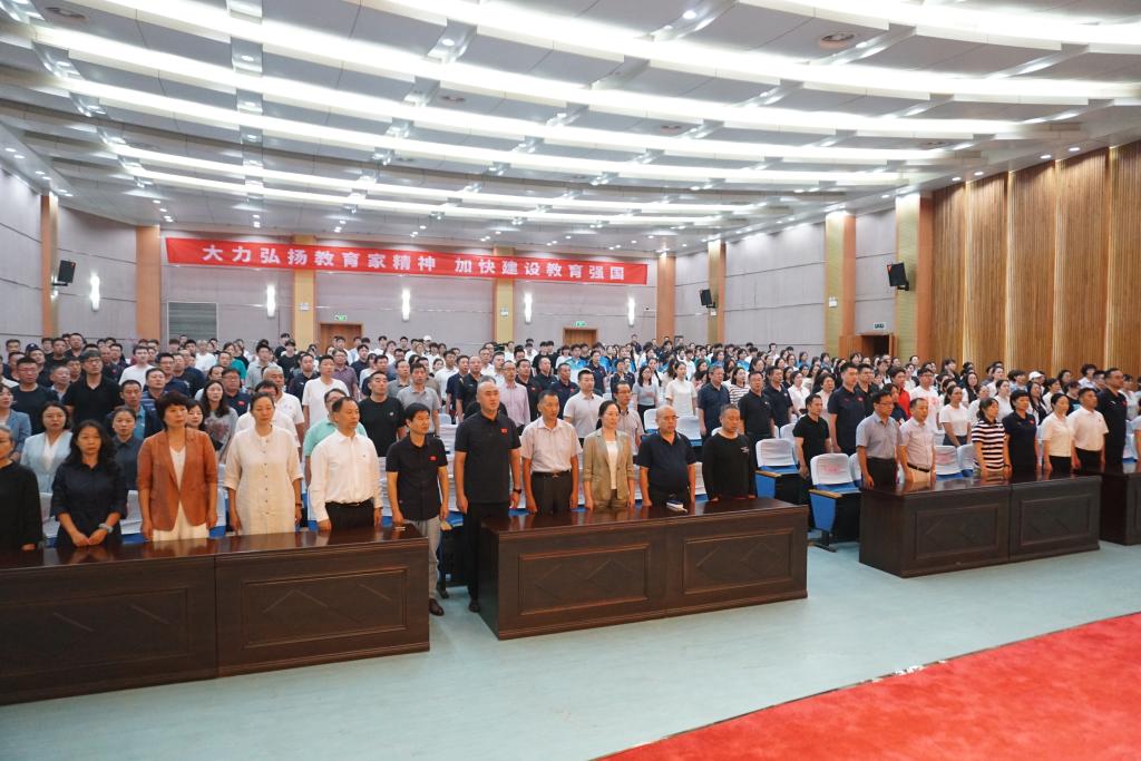 校领导张大超主持大会并要求,全体教职工要不断弘扬践行教育家精神,将教育家精神贯穿课堂教学、科学研究、竞赛训练、社会实践等各方面;要始终坚持师德师风第一标准;要始终坚定理想信念,勇担育人使命,全力以赴,推进河南体育学院事业健康快速发展。