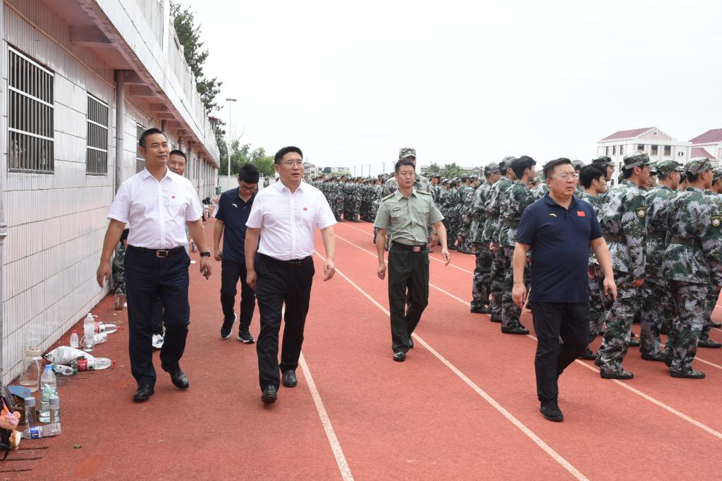 校领导一行还在校区负责同志的陪同下,看望了正在田径场接受军训的 2024 级新生。