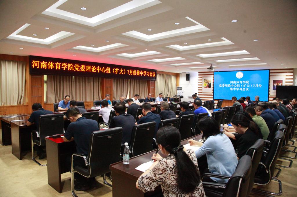 7月12日下午,学院召开党委理论学习中心组(扩大)集中学习会议,深入学习习近平总书记在中共中央政治局第十五次集体学习时的重要讲话精神,会议传达了河南省人民政府副省长宋争辉,省教育厅厅长毛杰在省体育局、省教育厅共建河南体育学院签约暨河南体育学院揭牌仪式上的讲话。党委书记张绍通主持会议并讲纪律党课。