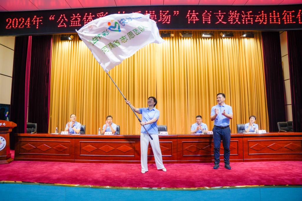 河南省体育局党组成员、副局长田间向支教团队授旗