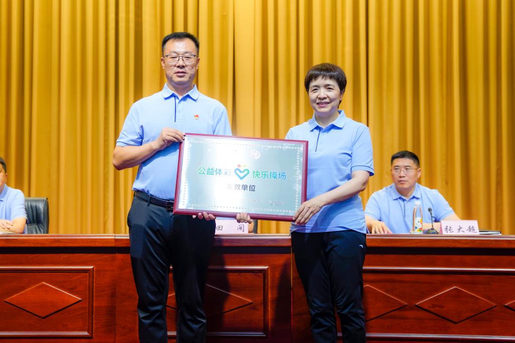 出征仪式上,河南省体育彩票管理中心向体育教育系团队颁发了支教牌匾,全体嘉宾为志愿者颁发了支教证书。