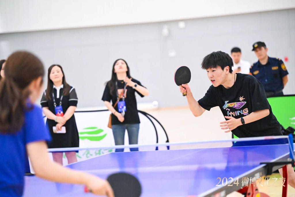 6月23日下午,在郑州举行的2024微博文化之夜系列活动中,我院7名学生在郑东新区市民体育公园与国际知名乒乓球选手福原爱进行了乒乓球体育文化交流,获得福原爱的赞赏和寄语。