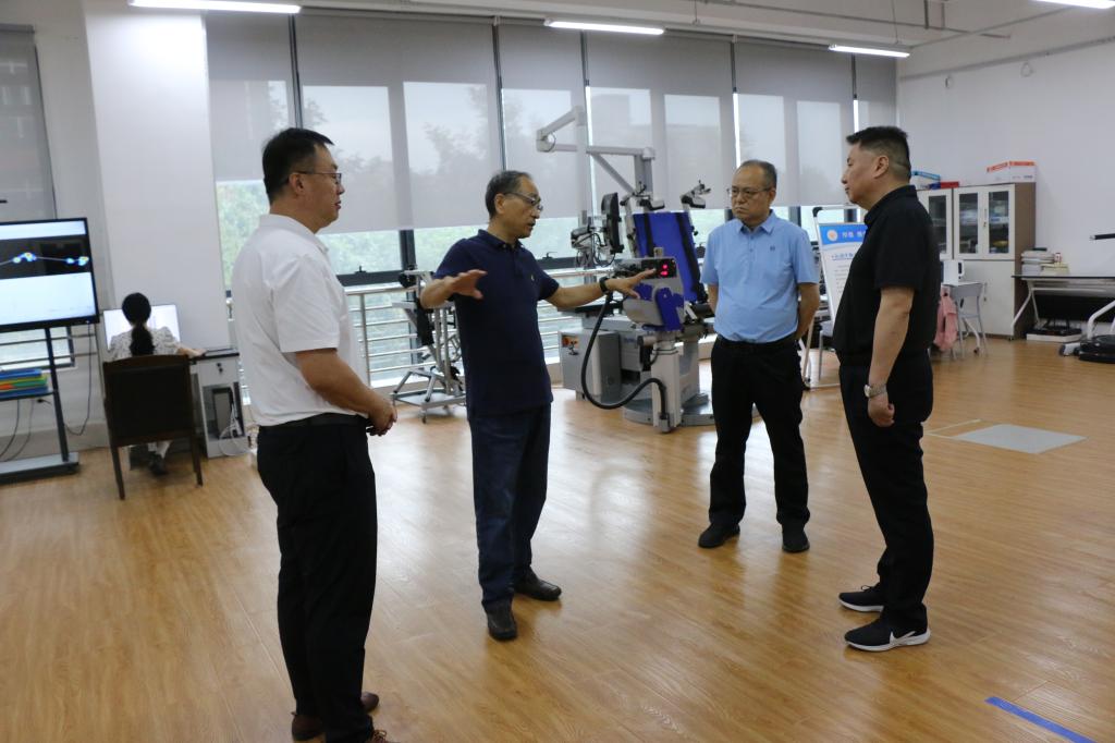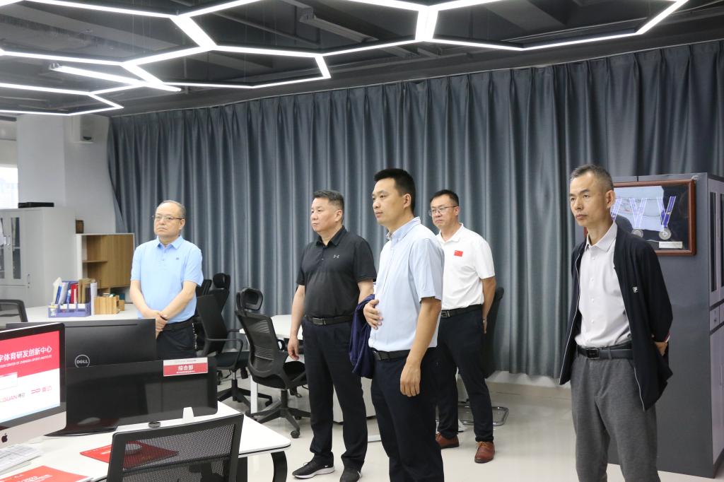 支安宇一行先后来到学院运动与康复中心、实验实训室、全民健身智能建设平台等处,详细了解运动康复设施、运动生物力学、运动机能科研情况,听取我院在数字赛事、智慧体育赛事、智慧健身等开发与建设等情况,听取了专业实验实训成果、体育产品研发以及服务体育强国、体育河南建设成果等情况介绍。