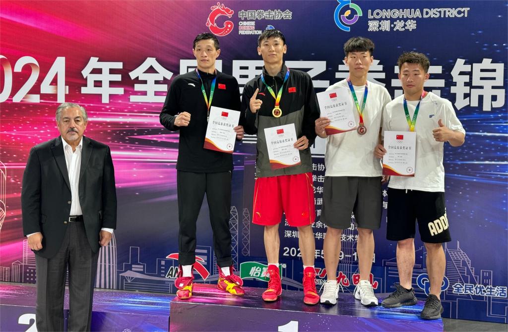 5月14日,在深圳龙华文体中心落幕的2024年全国男子拳击锦标赛决赛阶段的比赛中,我院大三学子赵蒙洋和2023年毕业校友马金阳以出色的发挥,分别获得75公斤级和+92公斤级的金牌。