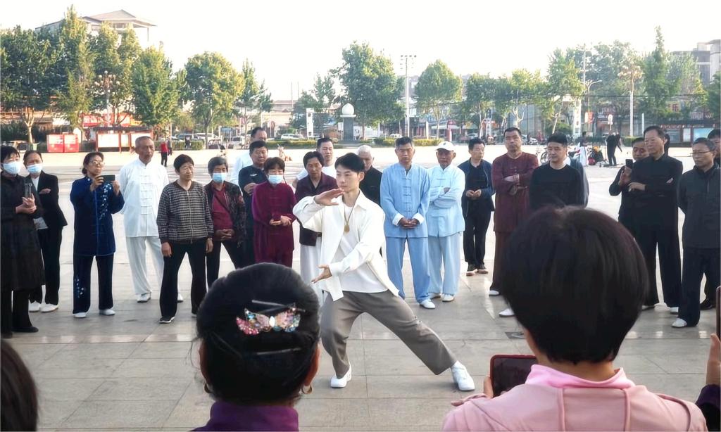 早上5点50分,在夏邑县长寿文化广场,太极拳世界冠军、我院武术与民族传统体育系教师马建超为县太极拳协会会员进行技术指导,并面向社会推广太极拳运动。马建超从多方面深入浅出的讲解、示范了太极拳拳理,及其在日常养生保健方面的实际运用,受到了学员们的热烈欢迎。上午,马建超还来到太平镇第一初级中学,以流行乐曲《本草纲目》为背景音乐,为200名学生上了一堂生动的太极拳健身示范课。