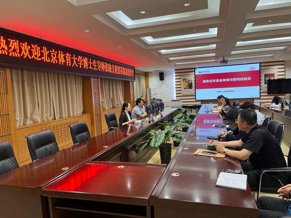 4月24日,北京体育大学张晓义受邀来我校开展学术活动,张晓义教授在第三会议室开展了题为“项目申报书撰写注意事项谈”的学术讲座。