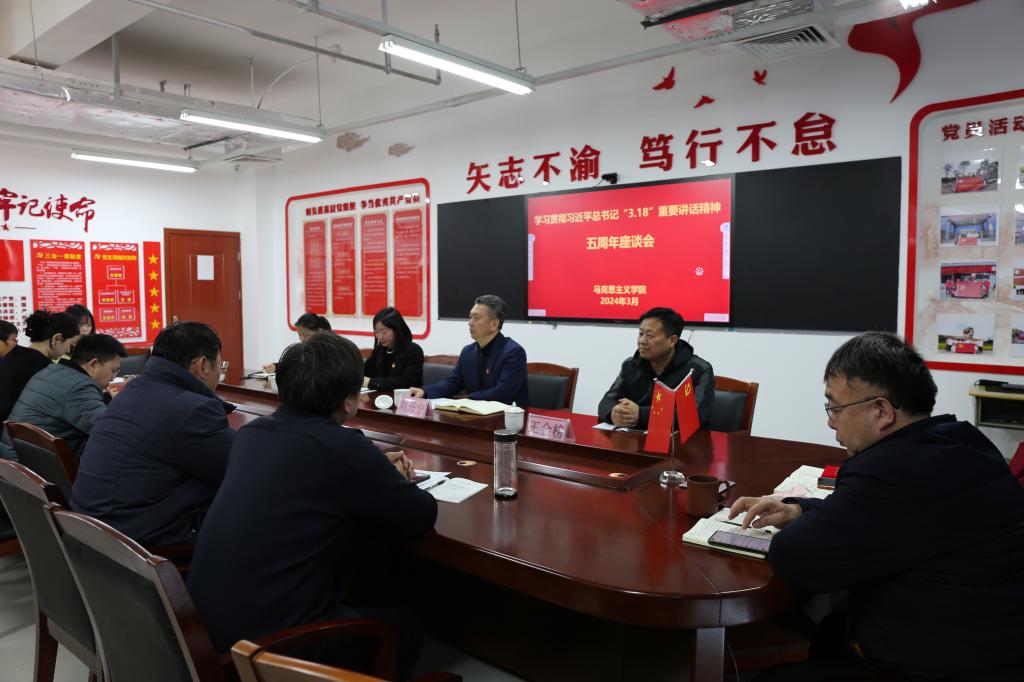3月12日,郑州大学体育学院纪念习近平总书记“3·18”重要讲话发表五周年座谈会在马克思主义学院举行。院党委副书记、工会主席刘丹宁出席座谈会并讲话。