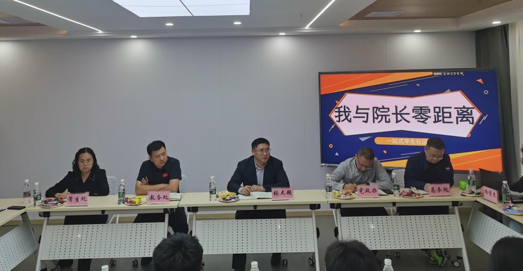 10月15日下午, “我与校长零距离”活动在“一站式”学生社区举行。校领导张大超与来自不同专业、不同年级的学生代表面对面交流座谈,零距离倾听同学们对大学生活的感悟和希望,对学校发展的建议。