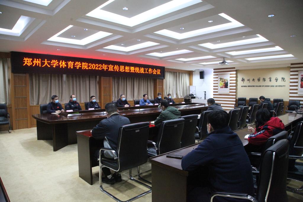 3月25日,郑州大学体育学院召开2022年宣传思想暨统战工作会议。院党委书记张绍通出席会议并讲话,强调宣传统战工作要高瞻远瞩,进一步在加强全院政治学习、提升站位上发挥好助手和导向作用,要务实重做,进一步在筑牢全院意识形态、做好统战工作上发挥把关和磁场作用,要守正创新,进一步在服务师生团结奋进、聚力发展上发挥枢纽和引领作用。