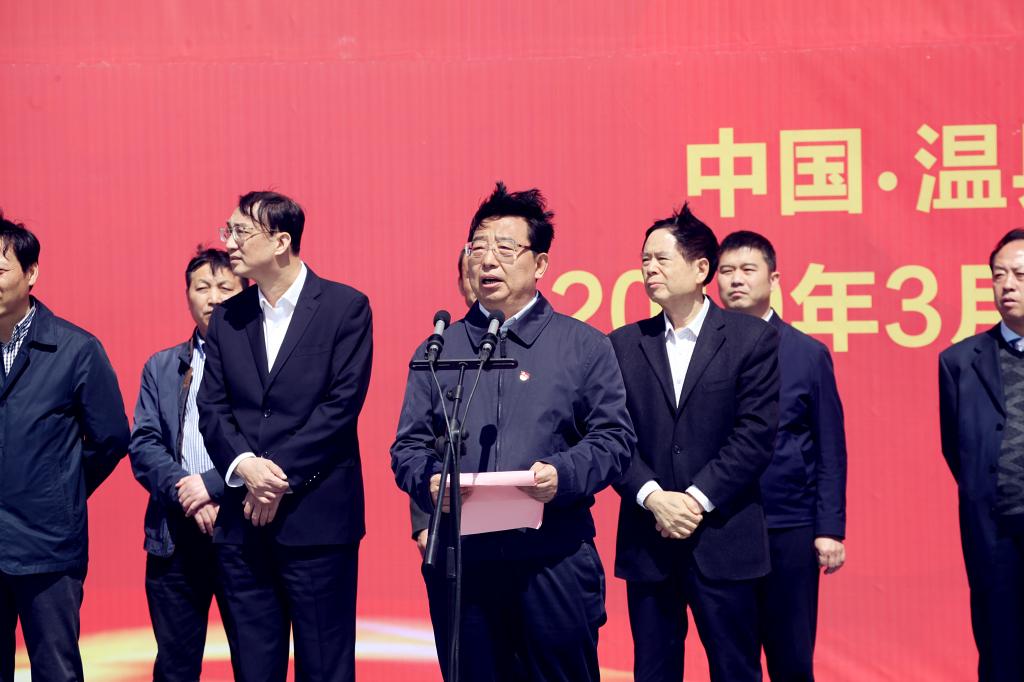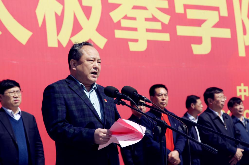 温县县委书记毛文明在开工仪式上致欢迎辞,郑州大学体育学院党委书记张绍通介绍河南省太极拳学院项目相关情况,省体育局党组书记、局长万旭焦作市委副书记、市长徐衣显分别致辞,河南省政协原副主席、河南省老年人体育协会主席、中国老年人体协太极拳专委会主任靳克文宣布项目开工。