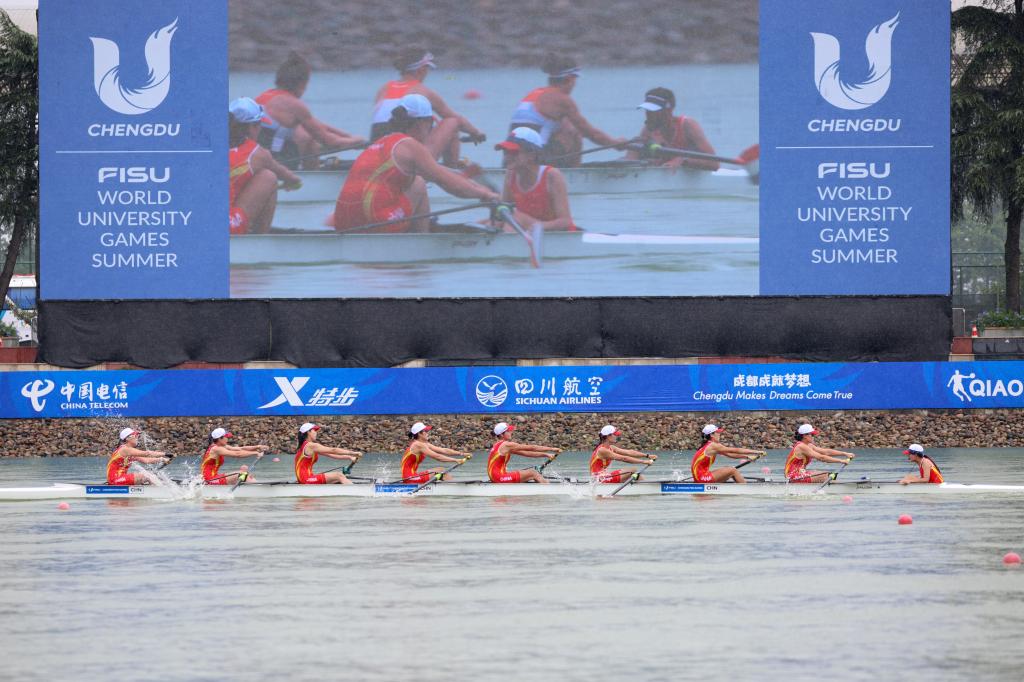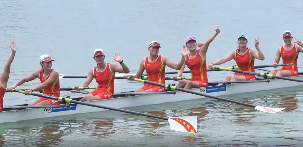 8月6日,郑州大学体育学院2022级学生赵旋伊在成都举行的第31届世界大学生夏季运动会赛艇项目女子八人单桨决赛中,与队友奋力拼搏为中国代表团夺得金牌!