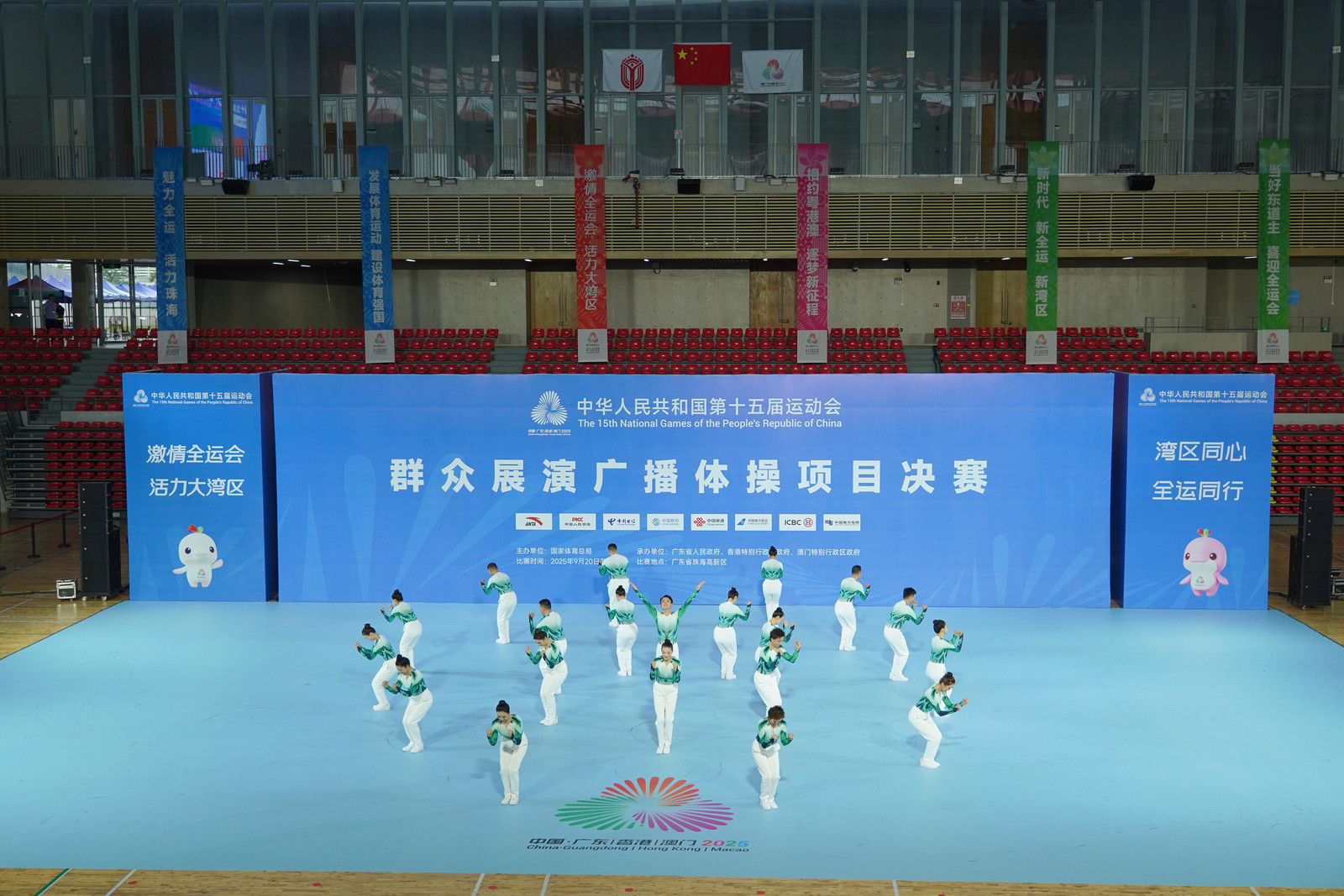 9月21日,第十五届全国运动会群众展演广播体操项目决赛在中山大学珠海校区体育馆落幕,河南广播体操代表队以92.09分获第五名,我校艺术系团队深度参与并助力佳绩。