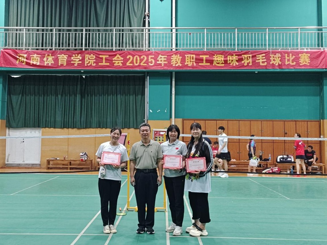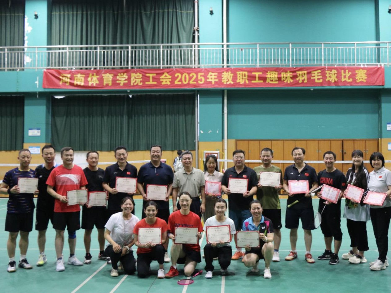 赛场上,教职工们一改课堂上严谨形象,化身活力四射的运动员,精准的扣杀、轻盈的吊球、默契的配合引得观众阵阵喝彩。各参赛选手都展现出了高超的竞技水平和协作精神。“趣味羽毛球”大大激发了教职工的参与热情,现场热闹非凡。经过紧张激烈的角逐,最终马宏剑、苏泽海组合(男子双打冠军)、曹坤、王艳组合(混双冠军)、韩开成、杨艳丽、雷小青(趣味组冠军)凭借出色表现摘得桂冠。赛后,由校党委副书记、工会主席刘丹宁为获奖选手颁发荣誉证书,并充分肯定活动对校园文化建设的积极意义。