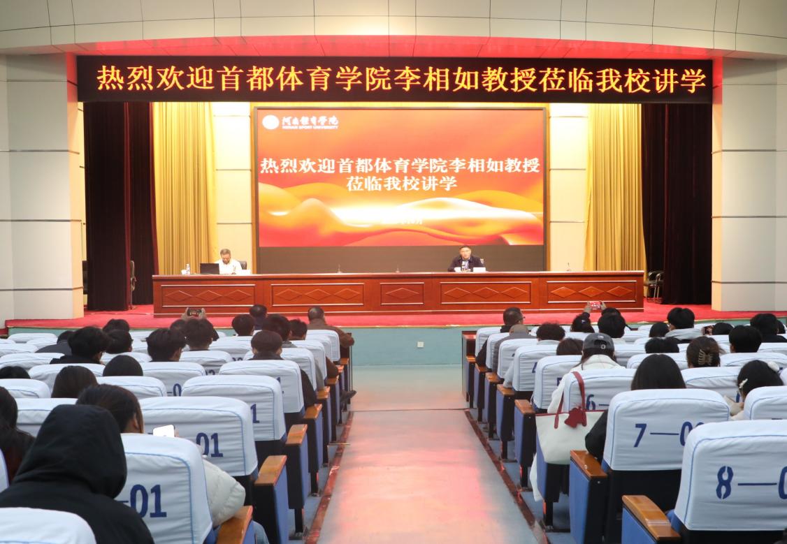 10月20日下午,国内体育休闲领域知名专家、首都体育学院博士生导师李相如教授应邀在我校学术报告厅,作了题为《新消费视域下的中国体育产业的新动能与创新路径》的学术报告。本次活动由校领导张大超教授主持,近400名中青年教师、学科专业带头人和学生共同参与。