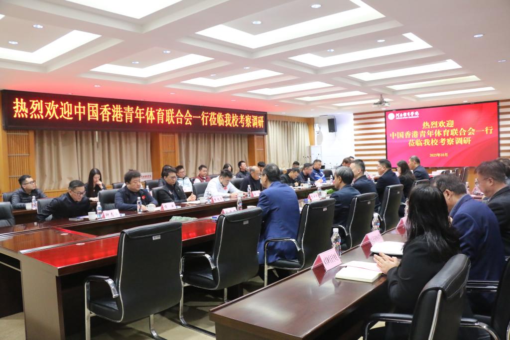 2025年10月27日上午,香港青年体育联合会考察团一行21人到访河南体育学院开展调研交流活动,省政府港澳办、省体育局等相关部门同志陪同考察。校领导张大超、张原、董庆、张学领及相关部门负责人陪同考察并出席座谈会。