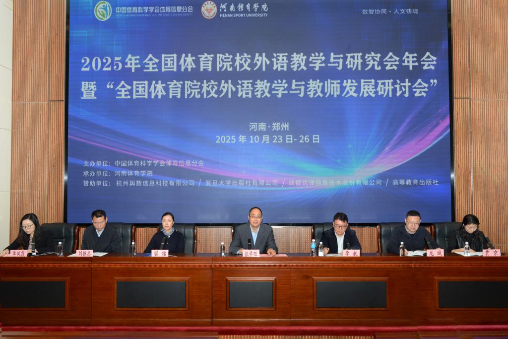 2025年10月23日至26日,全国体育院校外语教学与研究会年会暨“全国体育院系外语教学与教师发展研讨会”在我校举办。河南体育学院校领导张学领、全国体育院校外语教学与研究会理事长李航及来自全国15所体育院校50多位专家、学者出席开幕式。中国体育科学学会体育信息分会秘书长杨健民发来视频致辞。开幕式由体育旅游与外语系负责人单凤霞主持。