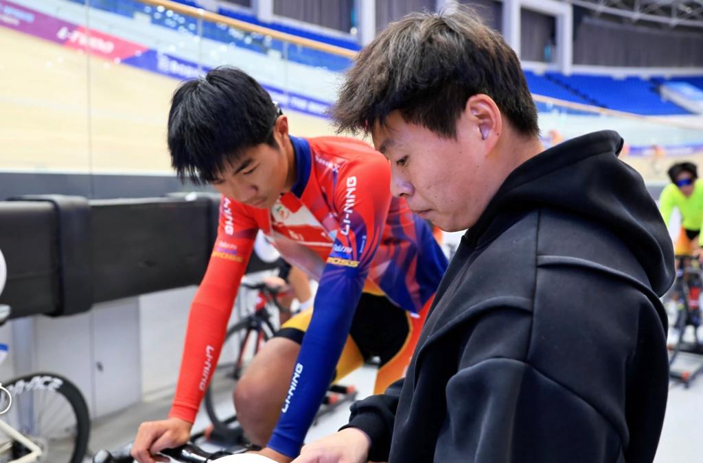 支训过程中的点滴故事,已然成为薛腾飞心中深刻的记忆。一次公路训练中,队员夏红斌因跟车过近意外侧翻,手肘擦伤、脚踝肿胀,医生建议其停止训练、静养休息。然而次日清晨,他身着摔破的骑行服,扶着自行车准时出现在队伍中,坚定地表示:“教练,我能训练,慢骑不会有问题。”“那一刻我突然明白,带训不仅仅是传授技术,更要对每一位队员用心负责,守护他们对自行车运动的热爱。”薛腾飞感慨道,人生犹如场地自行车赛,赛道总有起伏跌宕,但只要保持“持续蹬踏”的坚韧,就能骑行得更快、更稳。
