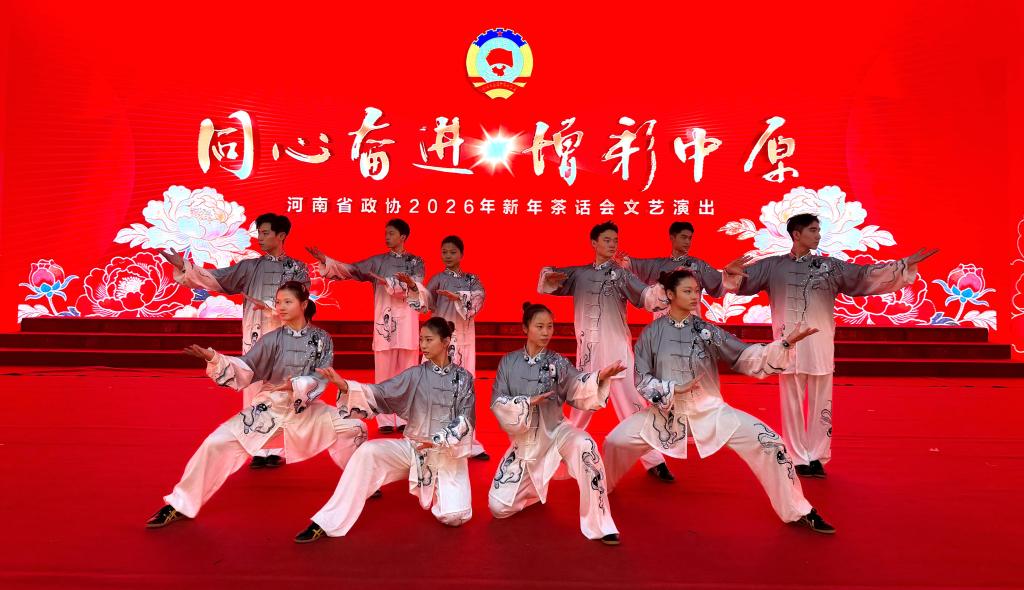 我校省太极拳队受邀在河南省政协2026年新年茶话会上进行文艺演出。节目《万物生·同心绘山河》将笛箫演奏、中国功夫等传统文化元素巧妙融合,为与会嘉宾呈现了一场别开生面的视听盛宴。