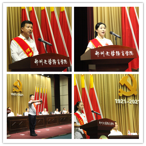张绍通代表学院党委向受到表彰的先进集体和个人表示热烈的祝贺,并向全院广大党员致以诚挚的问候。他强调,回望过往的奋斗路,眺望前方的奋进路,我们必须把党的历史学习好、总结好,把党的宝贵经验传承好、发扬好,铭记奋斗历程,担当历史使命,从党的奋斗历史中汲取前进力量,更加自觉地不忘初心,牢记使命,进一步增强“四个意识”、坚定“四个自信”、做到“两个维护”。面对新形势、新任务、新机遇、新挑战,我们要努力做到准确识变、科学应变、主动求变,以高度的政治责任感和强烈的历史使命感,团结一心,众志成城,攻坚克难,砥砺前行,协力开创新时代学院事业高质量发展新局面。一是要以党员身份为荣,坚定理想信念追求。任何时候,都要坚定理想信念,胸怀“两个大局”,心怀“国之大者”,带头作好表率,始终同以习近平同志为核心的党中央保持高度一致,将党的主张和重大决策部署转化为推动学院高质量发展、推动经济社会发展的实际成效。二是要以党性修养为根,争当党员先锋模范。要自觉加强党性修养,以“五个过硬”为标准,主动对标对表,查摆不足,身体力行,做到干干净净办事、堂堂正正做人,传承好共产党人的精神血脉。三是要以务实为民为本,密切党群鱼水深情。要牢记为人民服务的宗旨意识,强化答卷意识,把结果导向树得更牢,把出彩使命扛得更稳,干字当头、实字托底,在为师生办实事上,用真功,下大力,不断增强师生的获得感、幸福感、安全感。四是要坚持光荣革命传统,开创学院工作发展新局。要在传承光荣革命传统过程中汲取改革创新、敢为人先、自我革命的智慧、勇气和力量,聚焦学院高质量发展主题,不断加强和改进党的建设,持续推进治理体系和治理能力现代化,全面提升办学质量和办学水平,为成功申办河南体育学院,推动新时代学院事业高质量发展提供坚强政治保证。